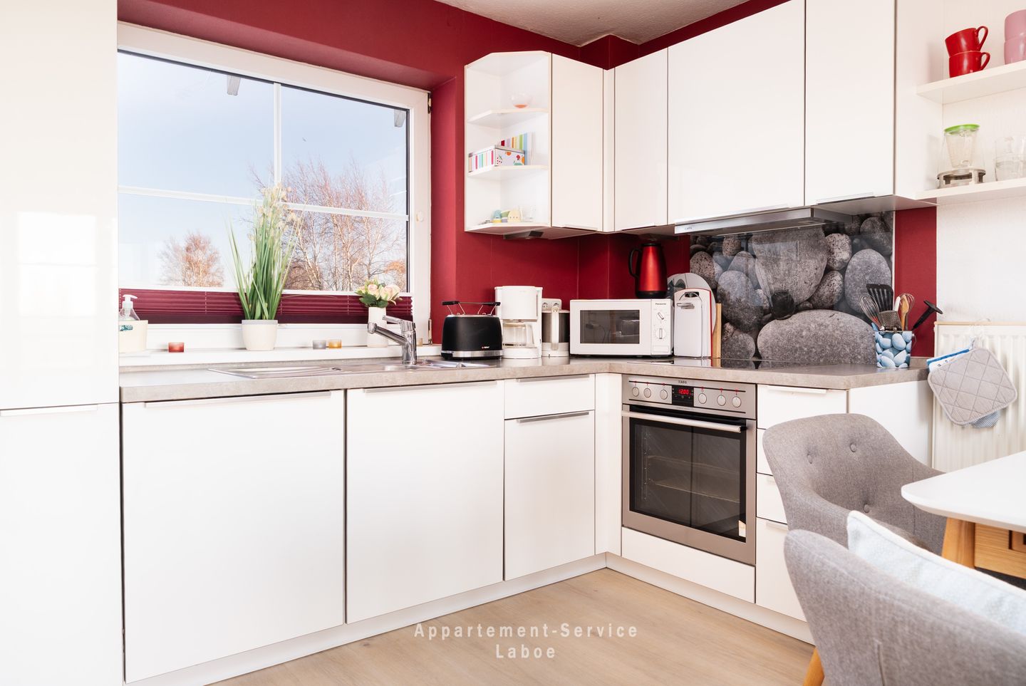 Restaurants und Cafés sind in etwa 100 Metern fußläufig erreichbar. Das Zentrum von Laboe liegt rund 1,5 Kilometer entfernt und kann bequem mit dem Fahrrad oder bei einem Spaziergang entlang der Küste erreicht werden.